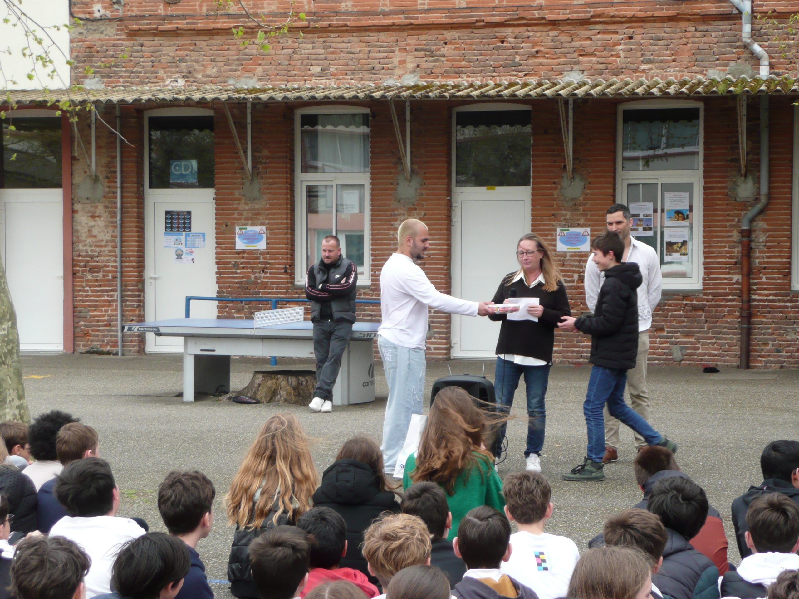 En ce vendredi 4 avril, les élèves étaient tous réunis, bravant le vent d’Autan, pour connaître les gagnants du concours des blasons. Cette année, le thème commun était l’Egypte antique et nous avons eu des blasons de grande qualité.