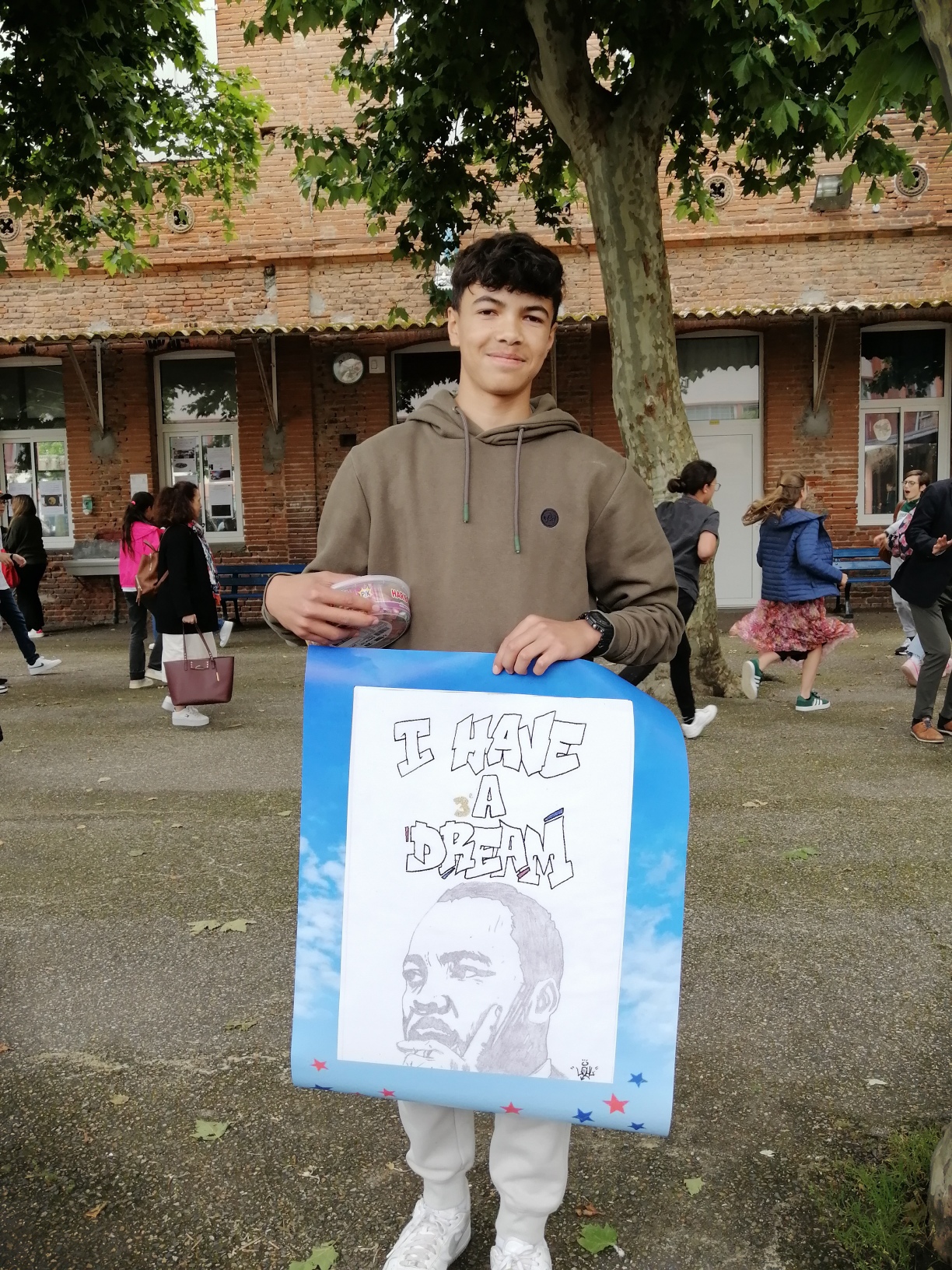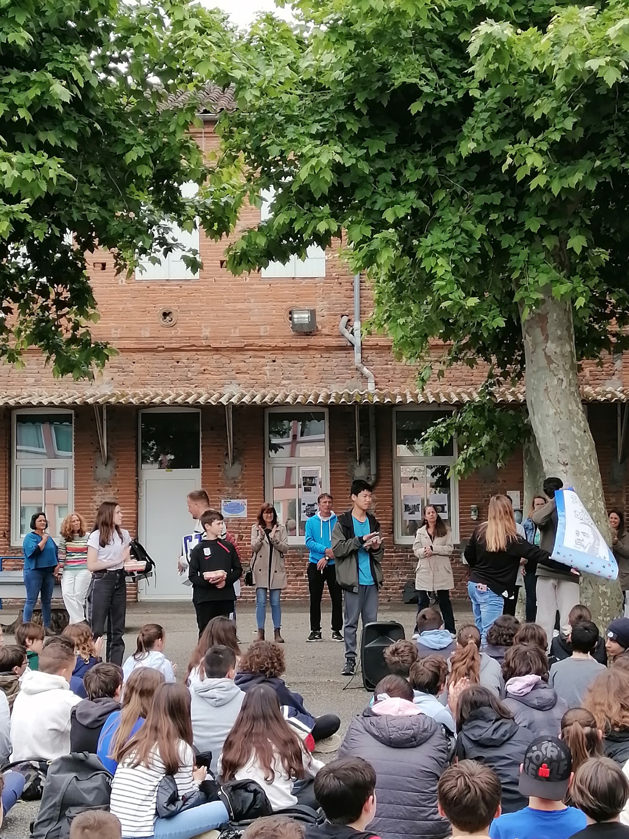 Pour finir, le grand gagnant tous niveaux confondus est la classe de 3ème A avec leur blason Martin Luther King. Un poster de leur blason leur a été remis afin de l’afficher fièrement dans leur classe.
