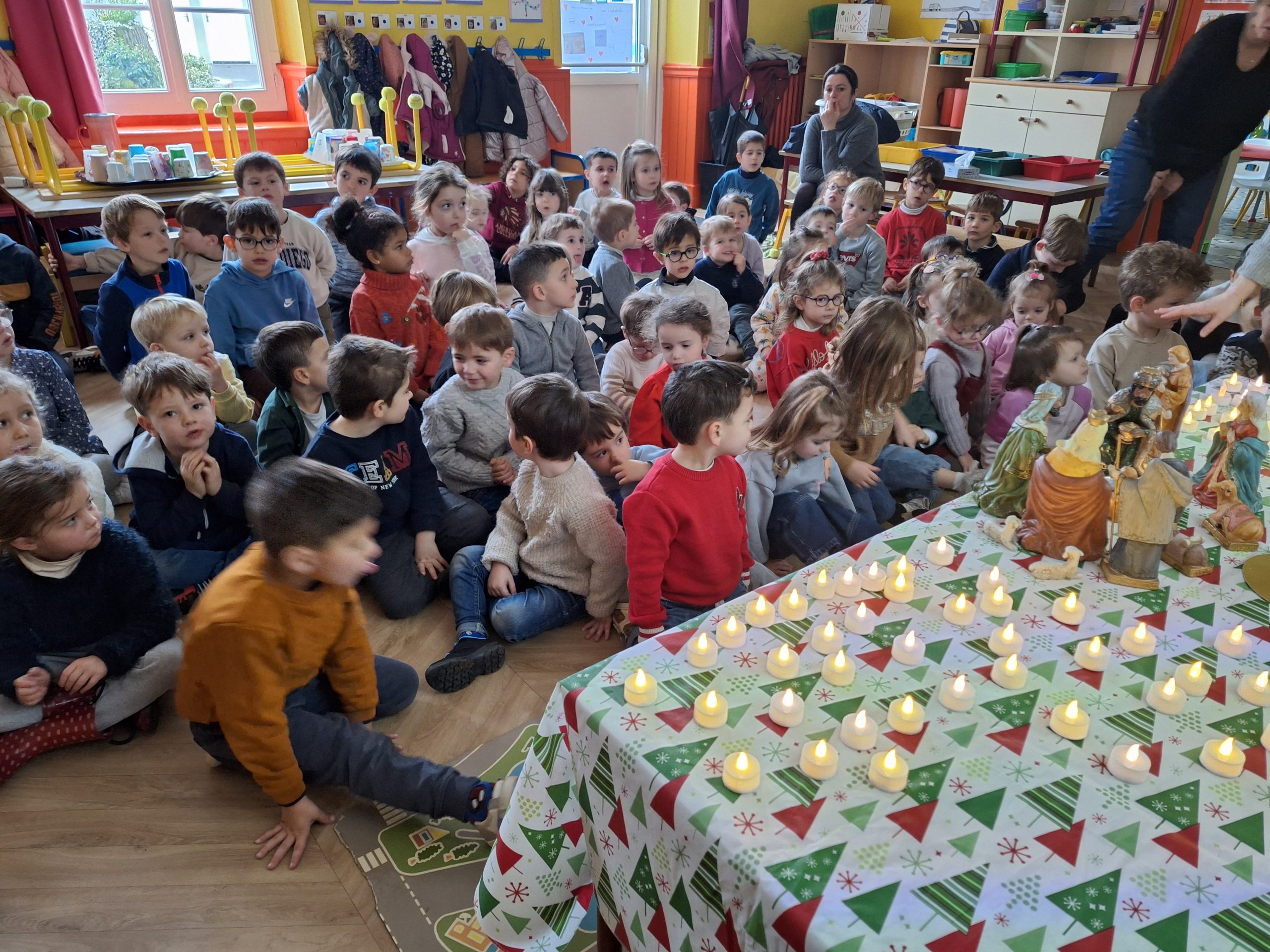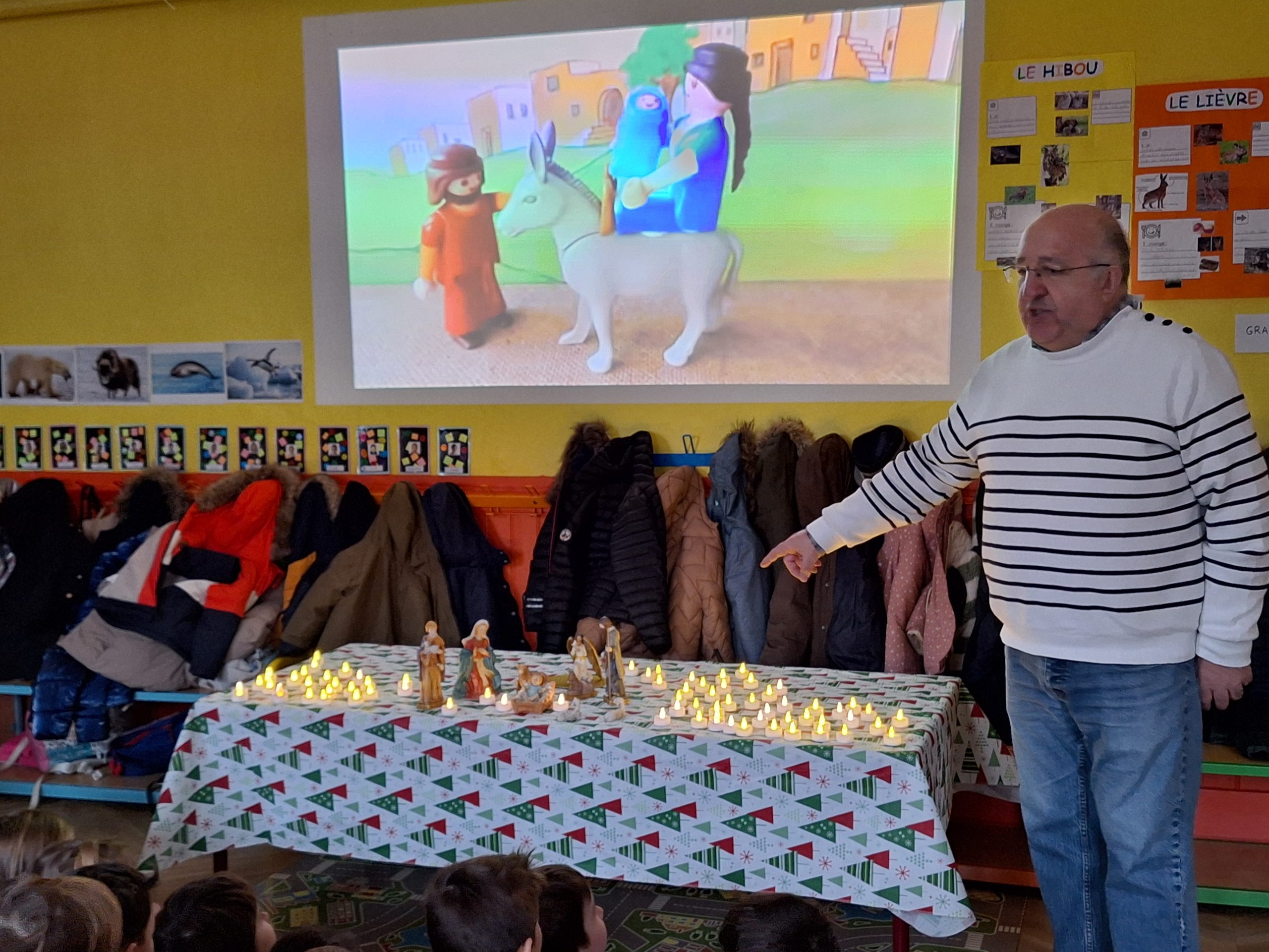 Ce mardi 27 janvier les enfants ont écouté la belle histoire de la Chandeleur, la fête des chandelles, expliquée par Bernard, en remontant à Noël et l’Epiphanie.