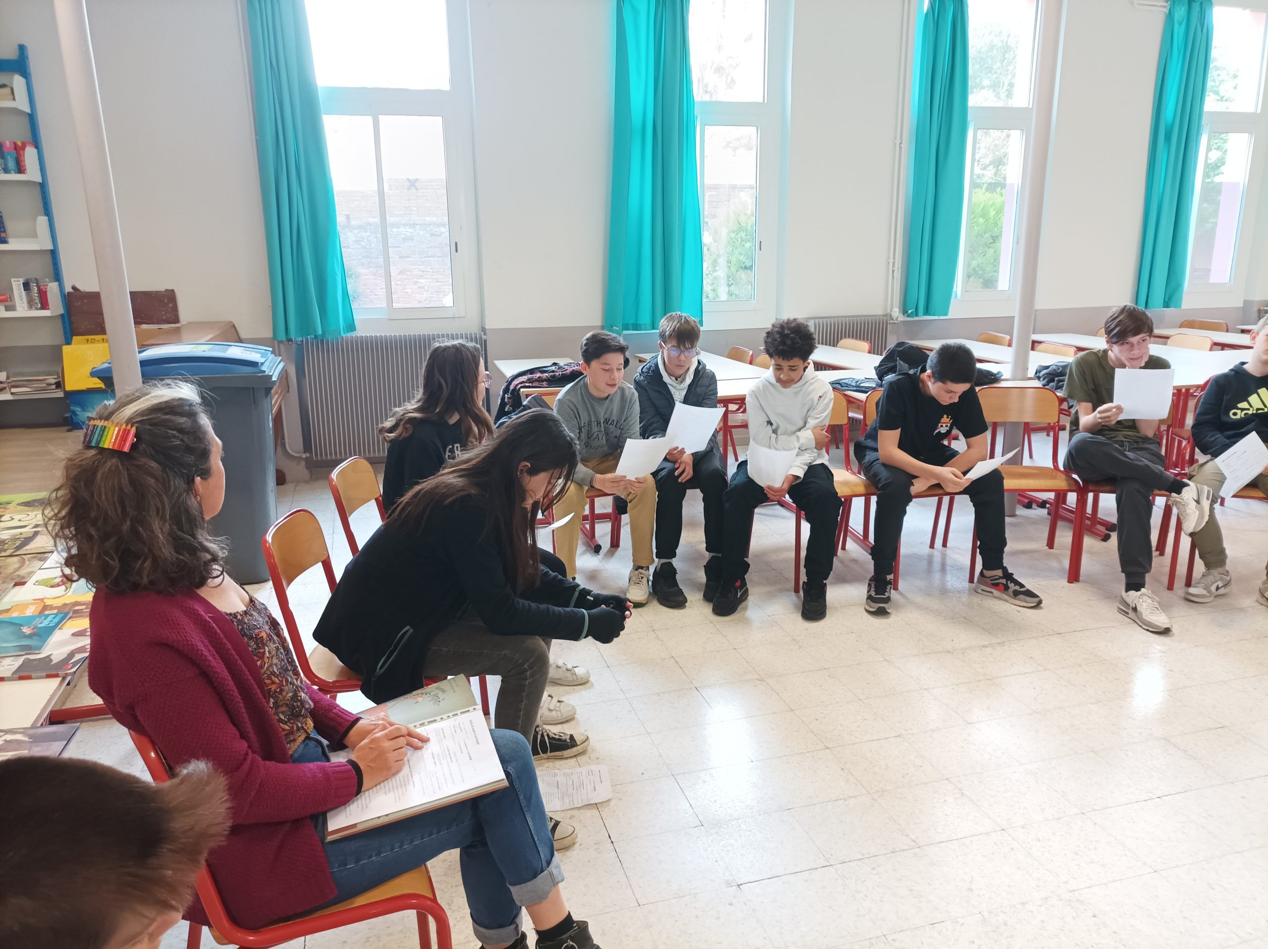 Elle nous a présenté des techniques à expérimenter pour s’écouter, bien articuler et faire une lecture collective.